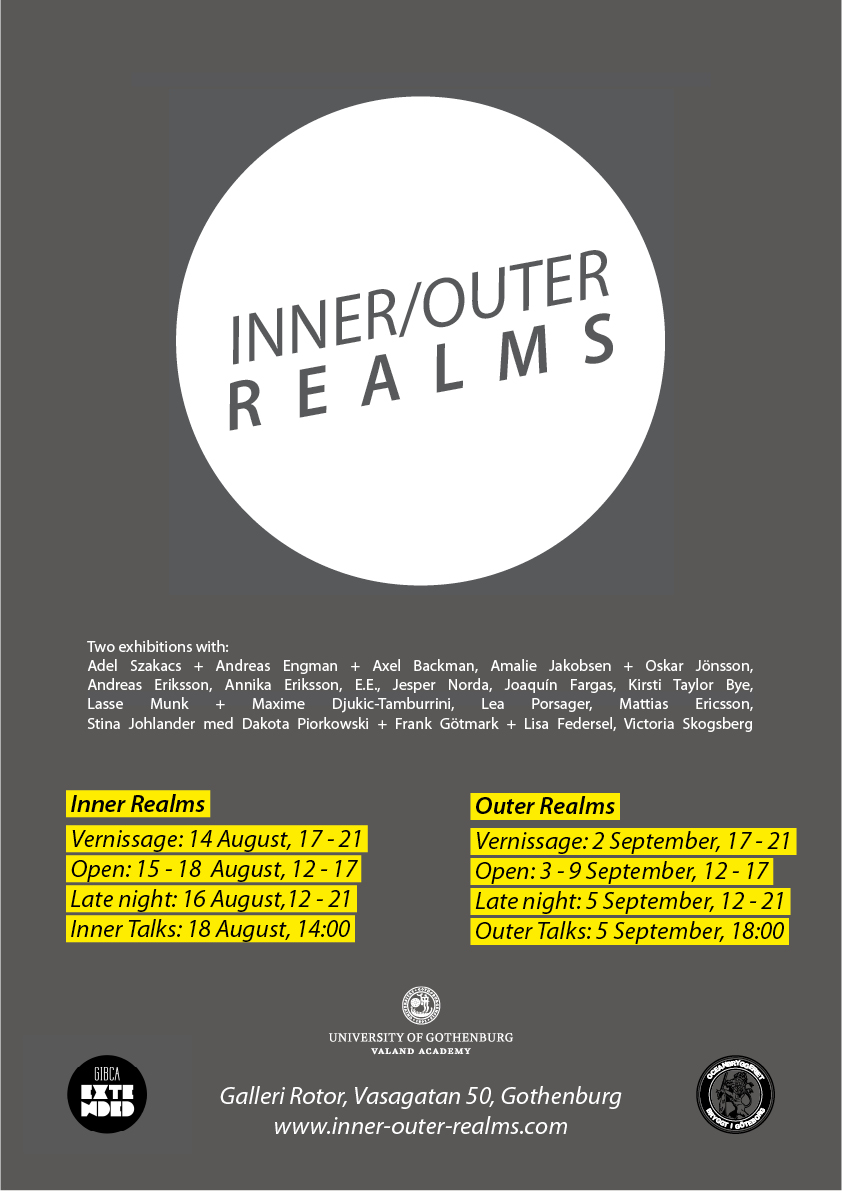 Galleri Rotor presents “Inner & Outer Realms” two exhibitions curated by a diverse group of artists, architects and cultural historians. With the same initial idea and common theme of Inner & Outer Realms we illustrate two interconnected spheres both in today’s extroverted society and the disconnected individual. We have invited not only artists but also hypnotists, gurus, biologists and engineers and show them side-by-side to challenge the gap between inner and outer realms. These exhibitions question why we investigate and what is essential.
